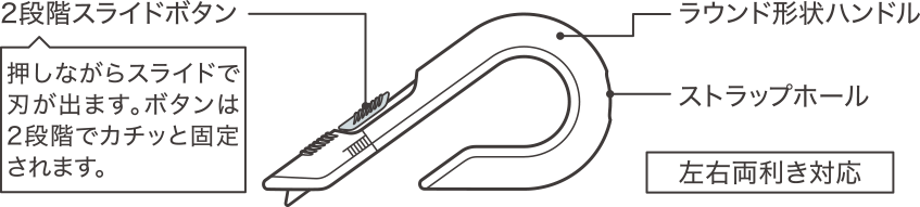 安心設計・錆が出ないことに加えて、刃を折る作業も不要なので、小さなお子様の初めてのカッターにオススメです。