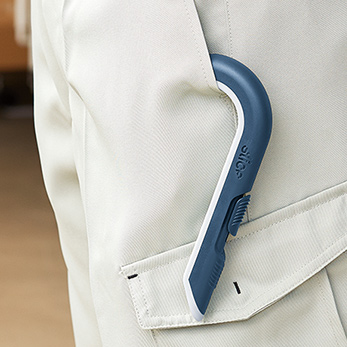 手全体で握ることができ、疲れにくい形状です。長時間にわたって何度もカッターを使用する現場作業にぴったりです。