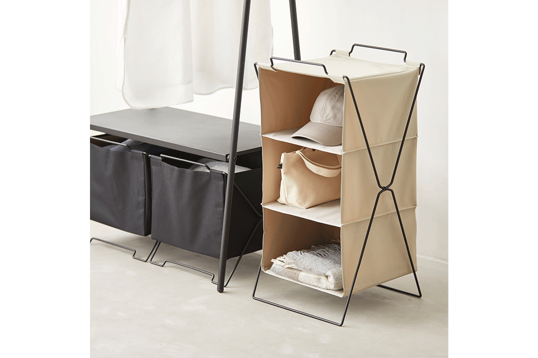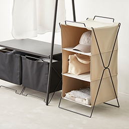 新商品「3段ファブリックシェルフ」「ボトムスワイヤーラック」「たためるハンガーラック」を発表しました。