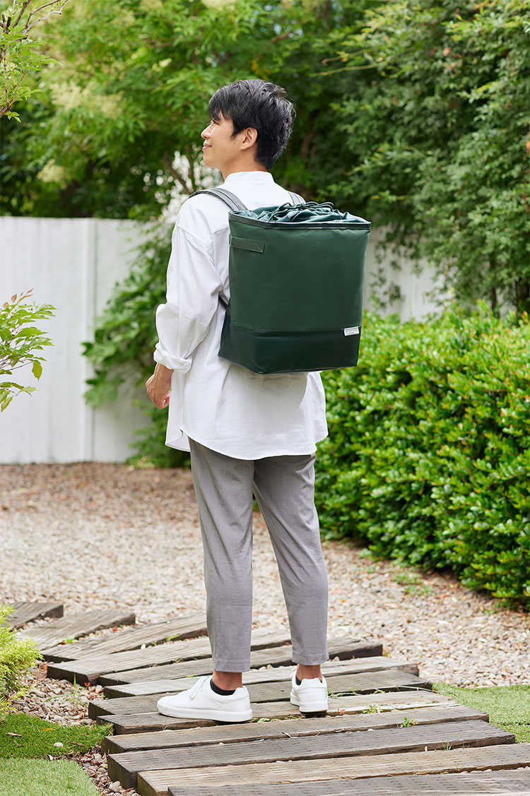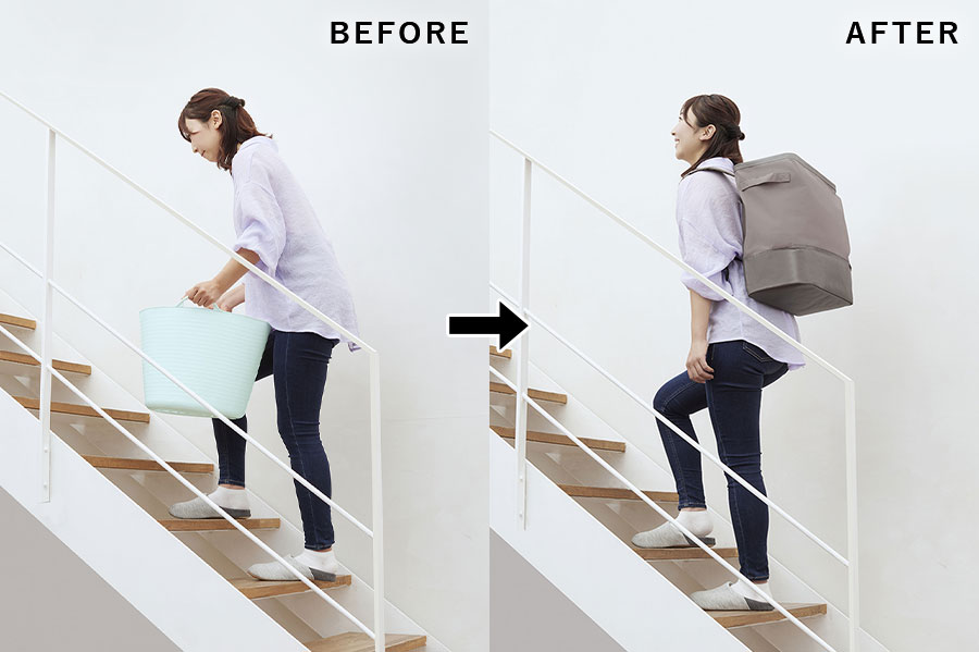 背負うことで、重い洗濯物を持ちながらの階段の上り下りがラクになります。