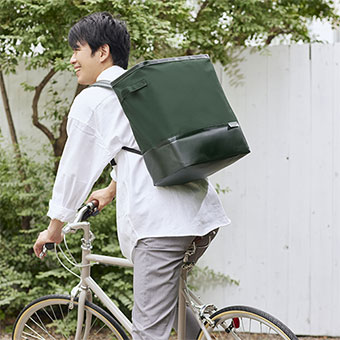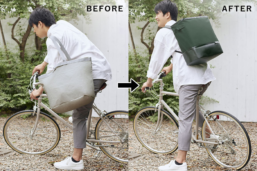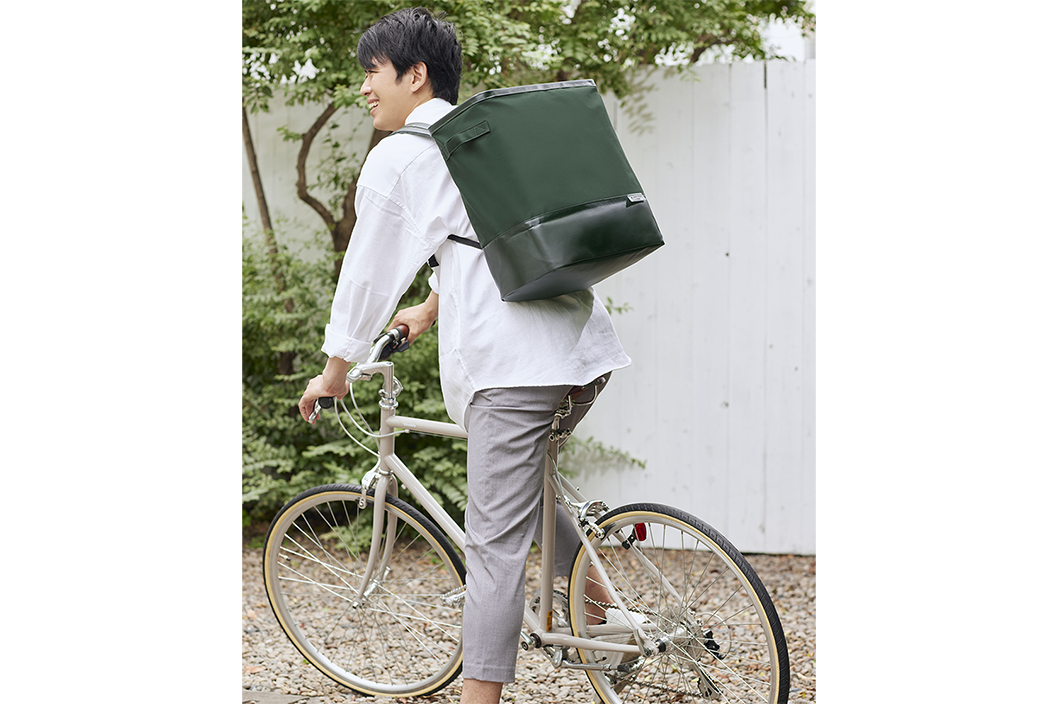 重さが片寄らないので、自転車でコインランドリーやクリーニング店に行くのも安全です。