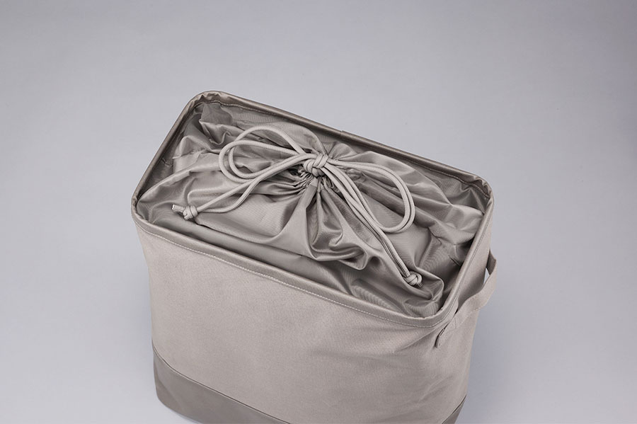 ひもで閉じれるので、中身が見えず、コインランドリーやクリーニング店にそのまま持って行けます。