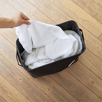 収納量は約25Lで、バスタオル6枚とフェイスタオル3枚が入ります。