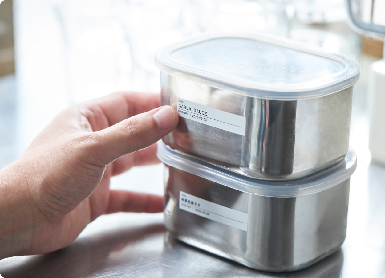開店前の時間は料理の下ごしらえなどで毎日バタバタ。そんな忙しい日々の中でも使い慣れている自分のスマホで簡単にラベルが作れるので、ちょっとしたすきま時間を有効活用できています。お店にそのまま置いておいても違和感のないデザインもお気に入りです。