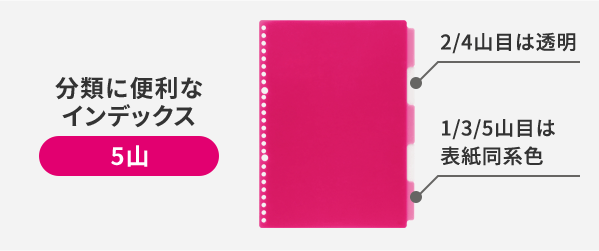 | 付属品 | ルーズリーフ10枚、インデックスシート5枚、フラップ付ポケット1枚 |