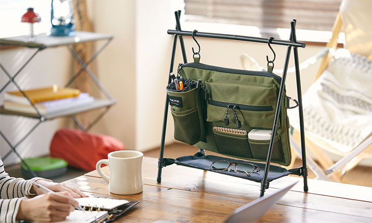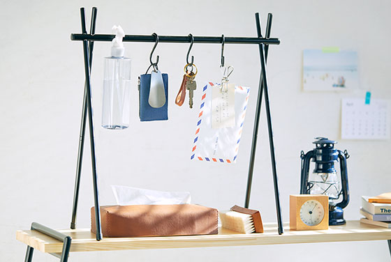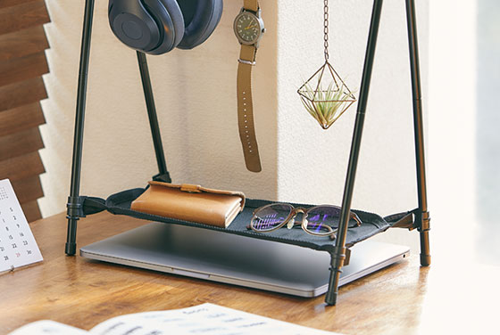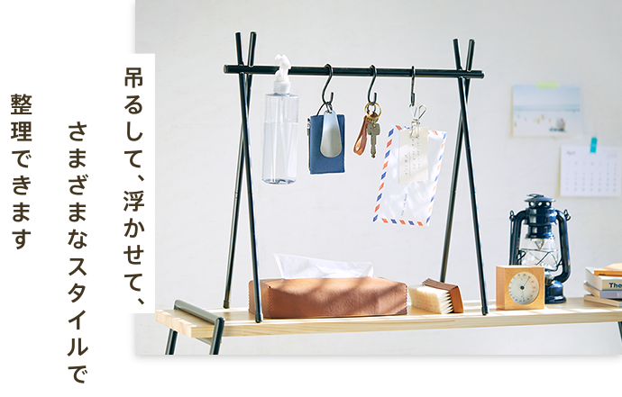 ハンギングラックに吊るすことで小物を簡単に取り出せる