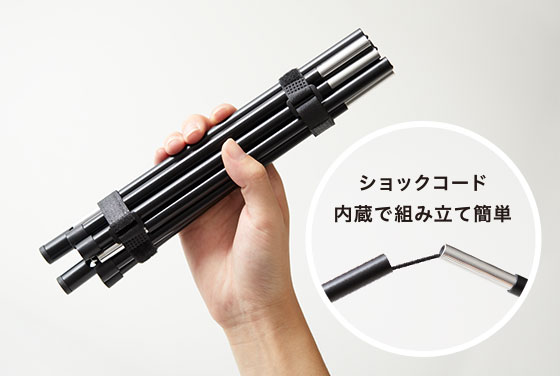 | 材質 | フレーム/アルミ合金、 ハンモック・専用ポーチ/ポリエステル、 フック/ステンレス |