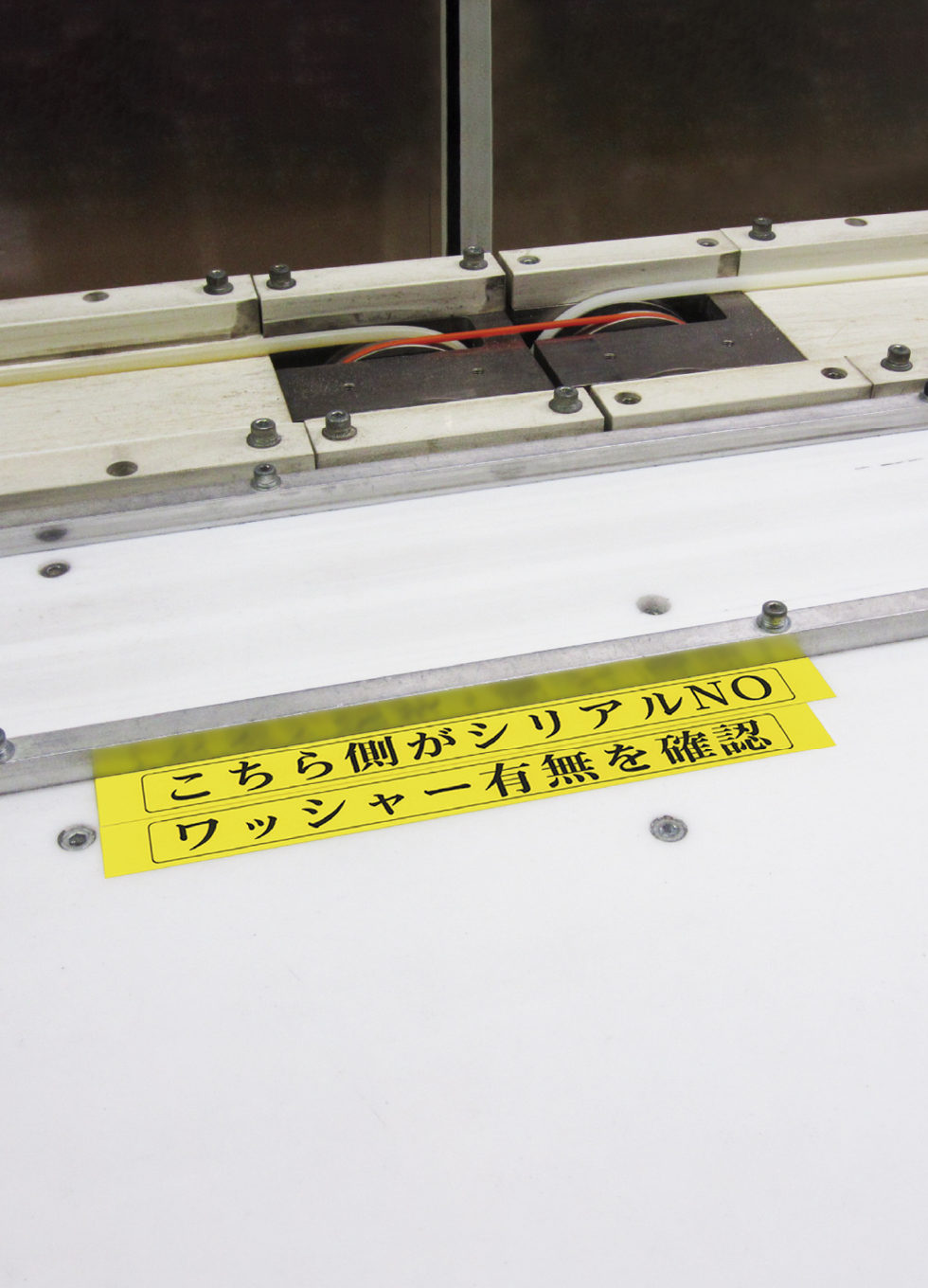 部品は上下や表裏を識別しにくいものも多く、ミスが起こりがちです。それなら、作業時に必ず目に入る手元に「テプラ」で注意書き。記憶や経験などの個人差をカバーできます。