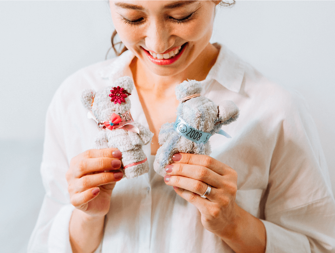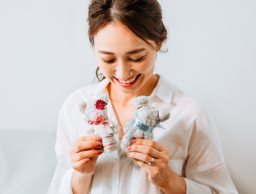子どもが赤ちゃんの頃に愛用していたタオルの保管方法を考えていたときに、ネットで知ったのが、思い出のタオルぐま。赤ちゃんの絵文字とともに、タオルを使用した期間を「テプラ」でりぼんに印字して首元に結べば、こんなに可愛く! 赤ちゃん時代に使っていたヘアクリップなどもあしらえば、世界にひとつだけのテディベアが完成。将来子どもたちが大きくなった時に、このクマを見ながら、幼い頃の思い出をたくさん語り合いたいと思っています。