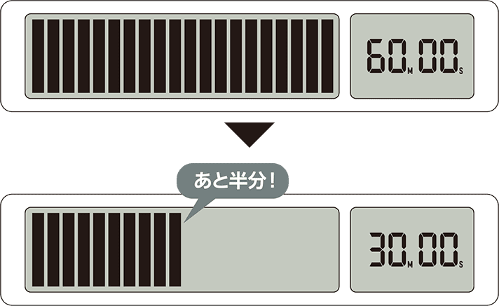 「ビジュアルバータイマー」は、大きな目盛り表示によって、
