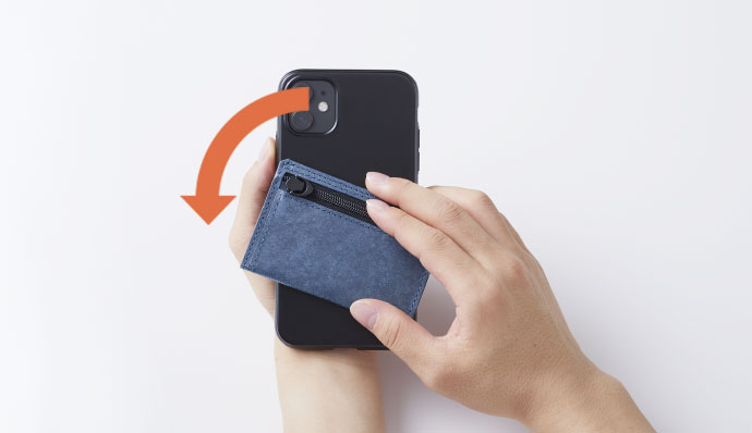 在宅時やスタンドに立て掛けたい時、回転させるだけでスマホからウォレカを取り外せます。