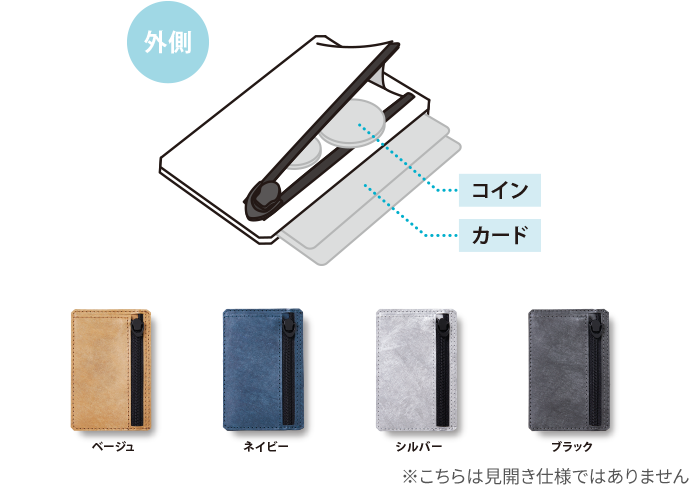 カード 約5枚、コイン 約15枚、二つ折り紙幣 約5枚、レシート・クーポン等 約3枚 |
