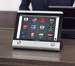 場所を選ばないシンプルな外観で、窓口業務で起こりうる多言語対応時に役立ちます。また窓口にはあらゆるお客様が来られます。言語設定時に、日本語⇔日本語で設定すれば聴覚障害のある方へのコミュニケーション機としても利用していただけます。 -