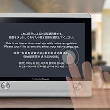 場所を選ばないシンプルな外観でホテルのフロントや施設窓口での多言語対応に理想的な翻訳機です。