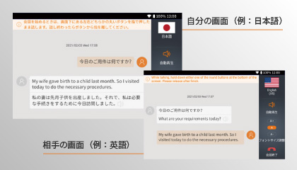 会話内容を把握しやすいソフト機能 - 翻訳結果のみではなく、元の言語も表示されるため、会話の内容がより理解しやすくなっています。