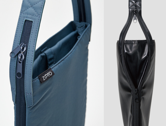 マチ幅変更時にわずらわしいファスナーの留め直しが不要なダブルファスナー式!