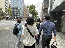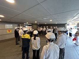 災害時の徒歩帰宅訓練および従業員の健康増進を目的に、数人グループで各主要ターミナル駅まで歩行するイベントを年1回実施しています。2024年は本社・松戸事業所地区で実施し、社長・役員を含めて約70名が参加しました。
